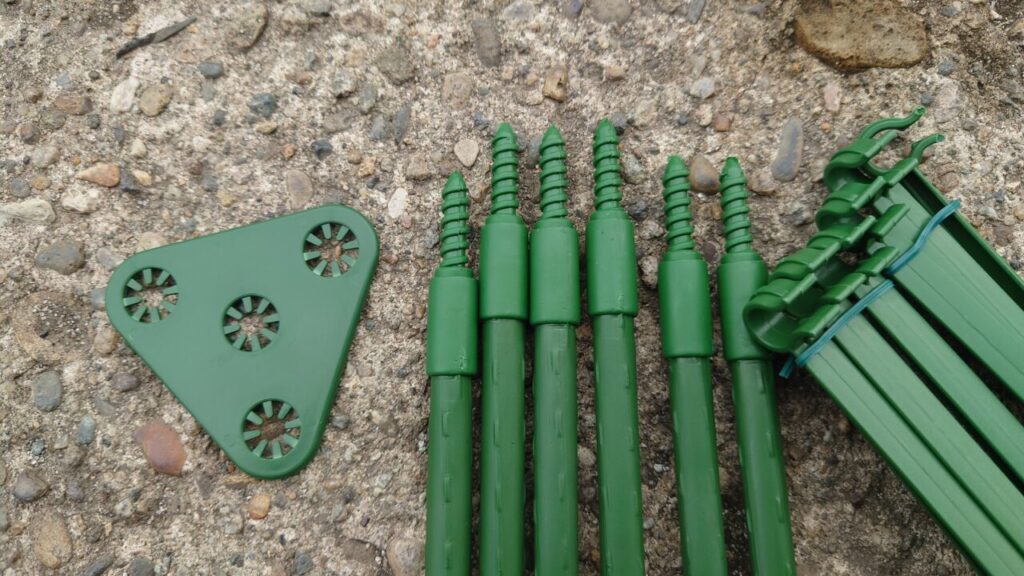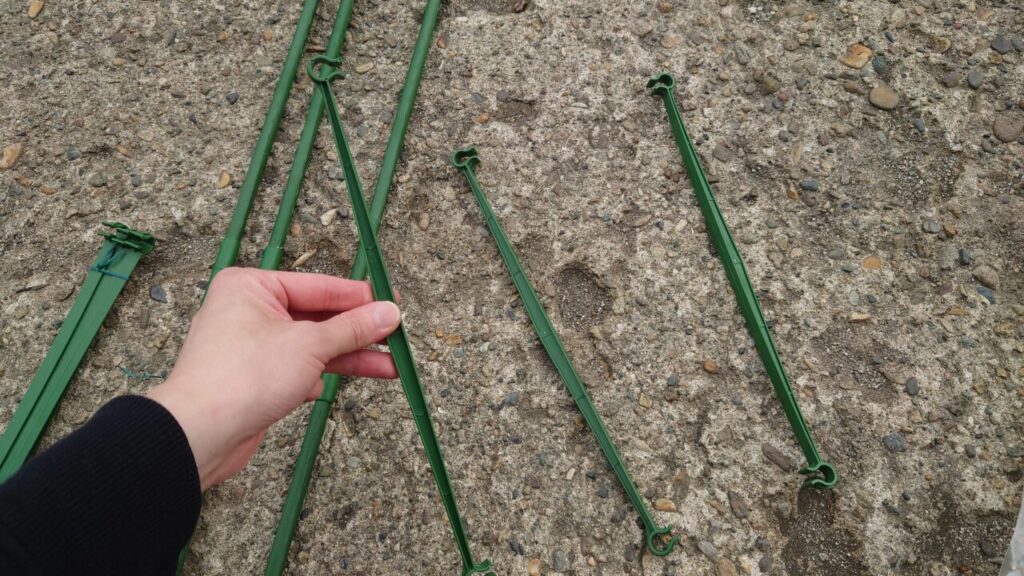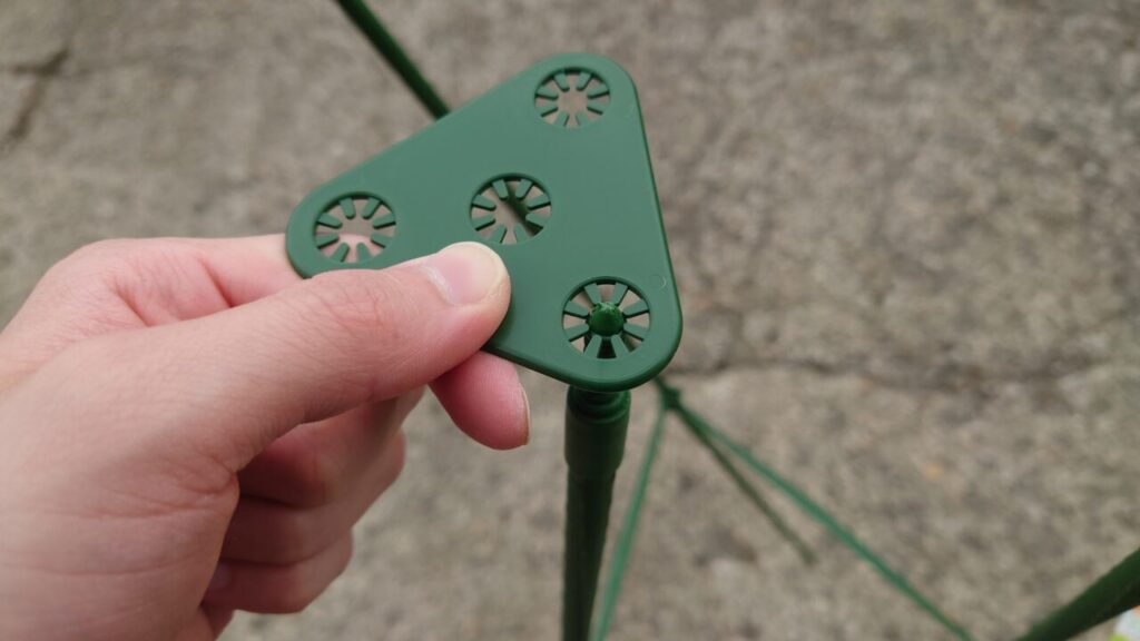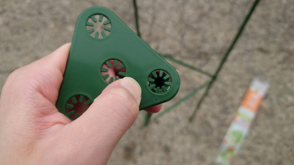 大体の使い方が分かったので支柱は解体しました。あとは、ミニトマトの苗が大きくなってきたら使いたいと思います。ちなみに、三角パーツは何度も使用しているとツメが破損する可能性アリ。