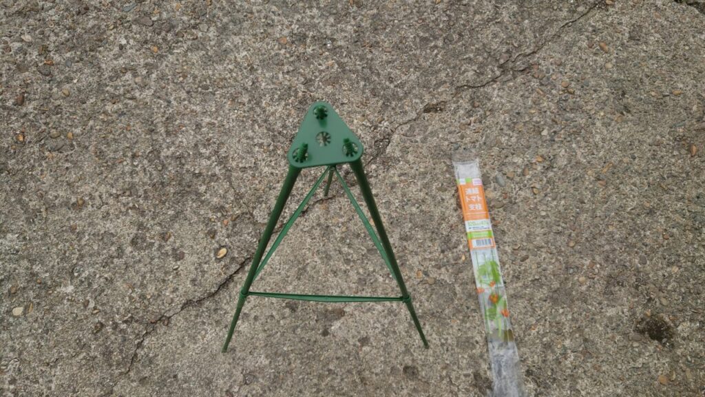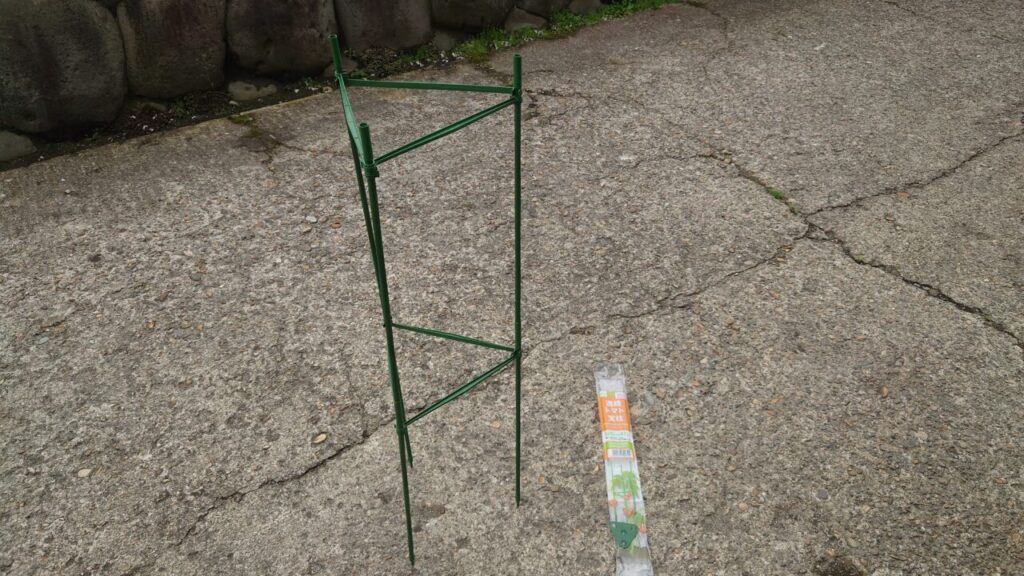 ちなみに、私の地域だと『連結トマト支柱』はすぐ在庫切れになったので買うなら2セット購入した方がいいかもです。何店舗かはしごして何とかもう1つゲットできたぜ!(´・ω・)でも買占めはやめようゼッタイ
