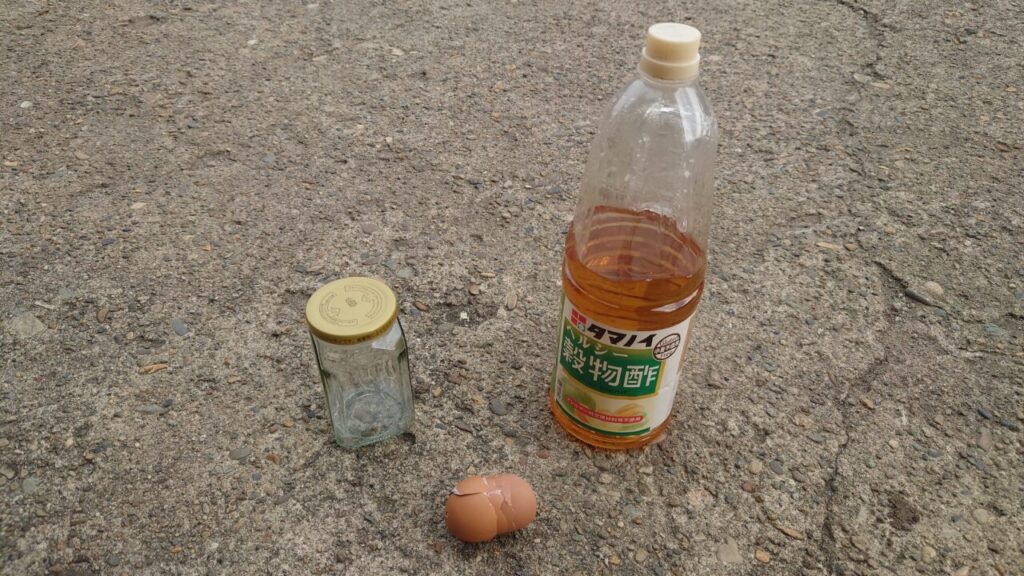 用意するものは『卵の殻(キレイに洗って乾燥させたもの)』と『酢』。あとは、適当な容器があればOK。