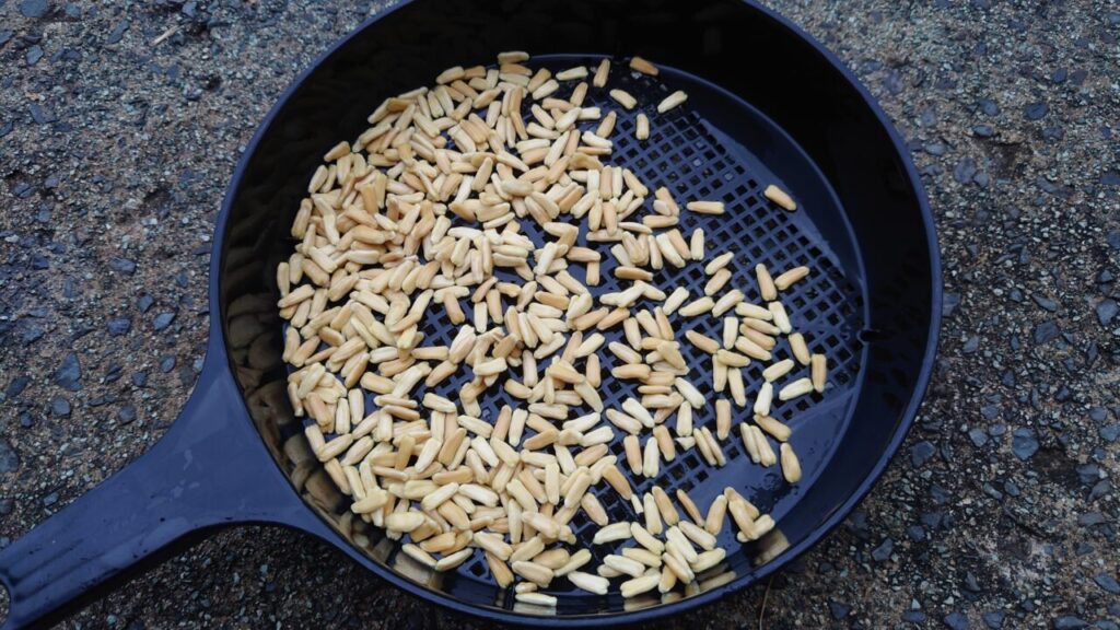 あとは、100均で購入した土ふるい(土砂フィルタ)に種を広げて乾燥。