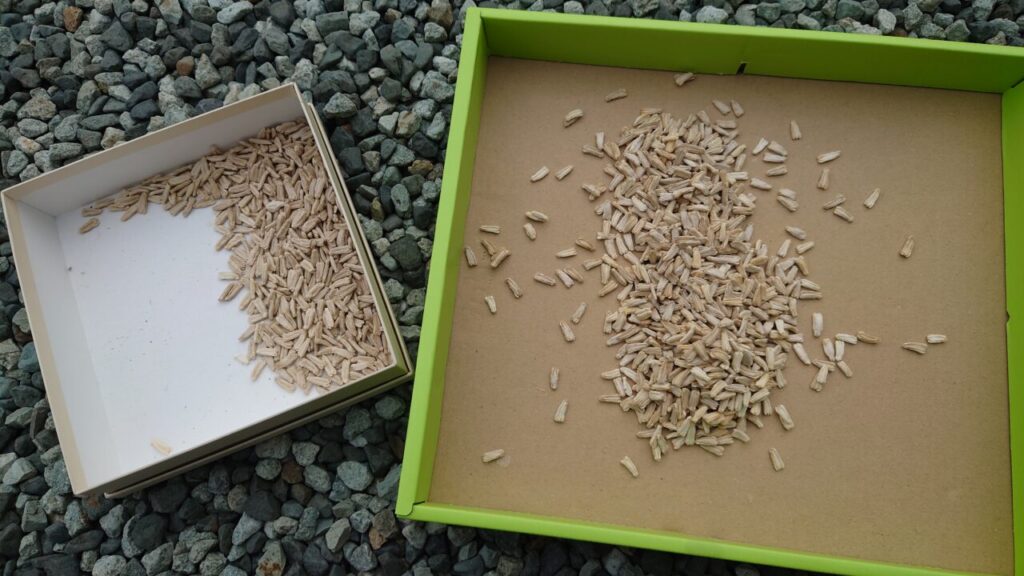 実は『納豆菌を入れれば種取りが楽になるのでは?』と思ったので試してました。結果、あまり意味がなかったです。逆に腐朽菌が増えづらくなり悪影響になるかも。(個人的な意見)