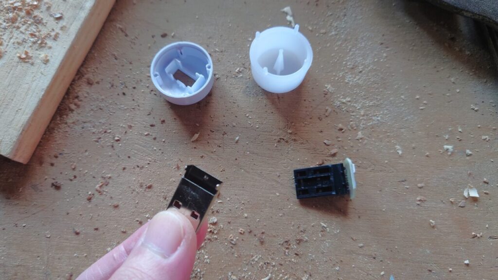 触っているともう少し分解できそうな事が分かり、進めていくとUSBの金口が外れました。