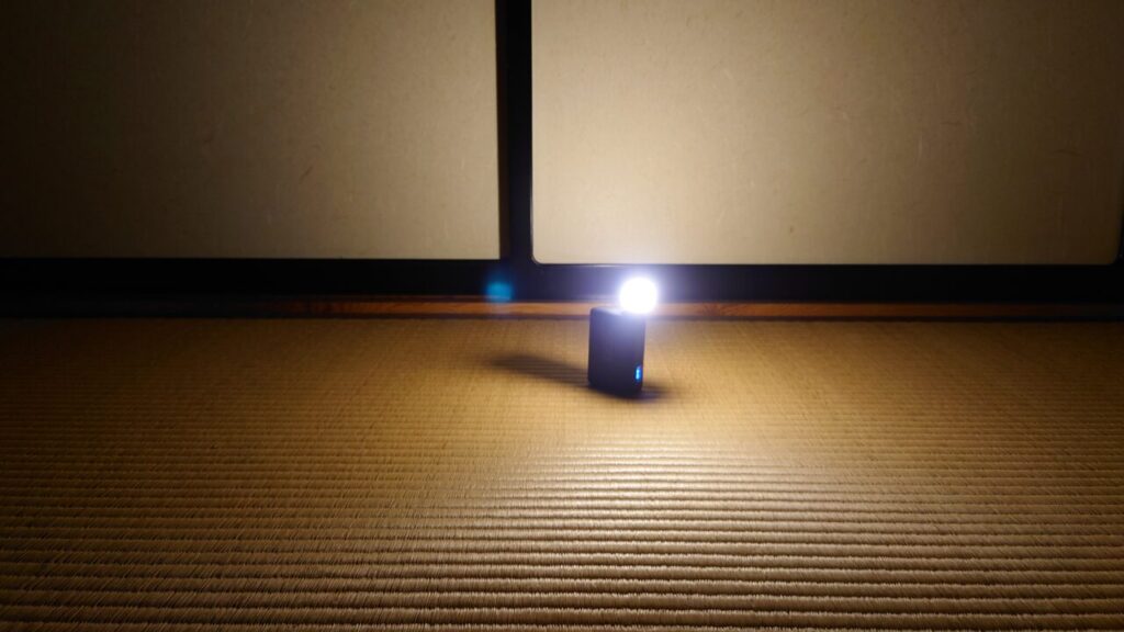 ちなみに、このモバイルバッテリーは電源のON/OFFボタンがあるのでライトを消す事ができました。(ボタンを2回押すと消える)これならハンディライトとしても使えそう!