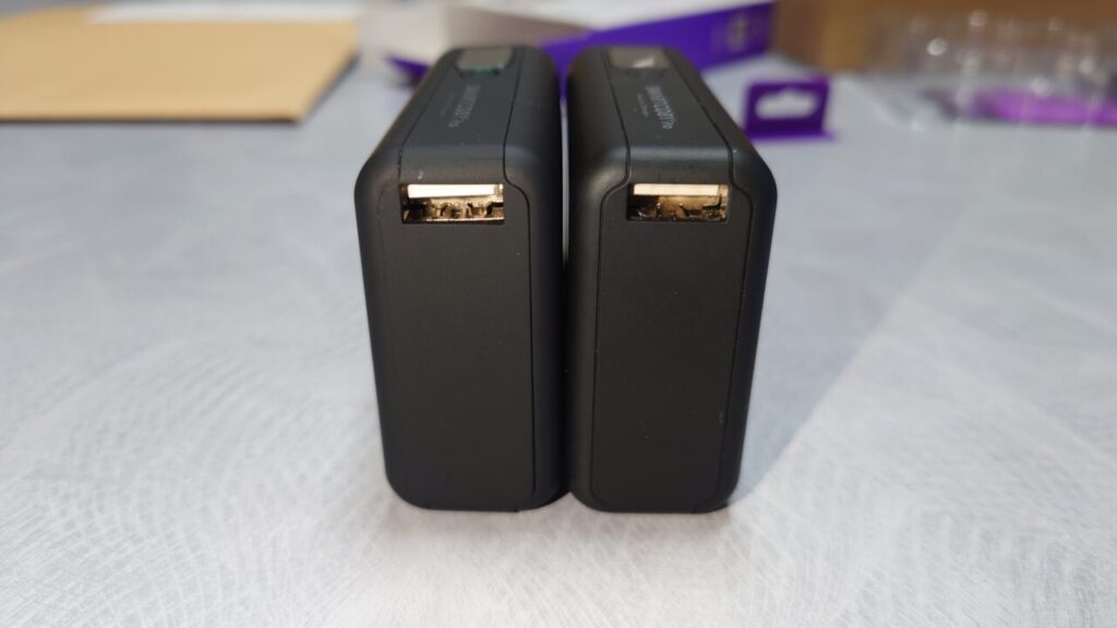 組み立てる時に外装がズレたのかな。まぁ、数回使用してますが異常は無いので大丈夫でしょう。USBケーブルを挿し込めるし、引っ掛かることもないです。