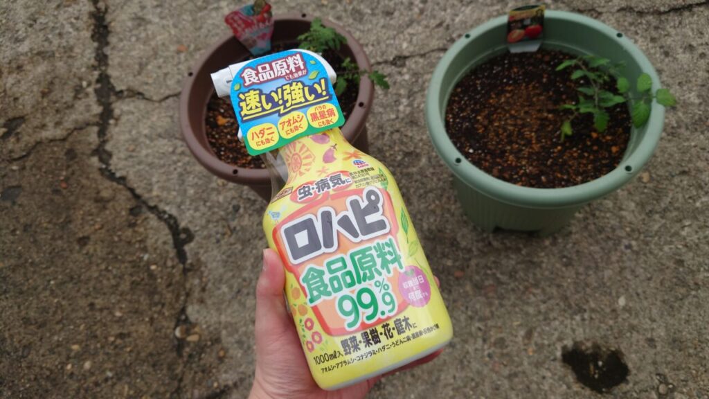 それでホームセンターで売ってる安い殺虫殺菌剤を購入しようと思いましたが、使用できる噴霧回数があったり収穫する時に使えないなど使い勝手が悪い。( ̄д ̄)え、めんどくさ・・・