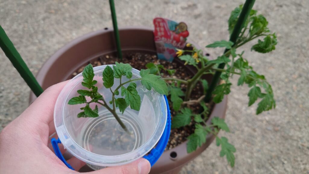 わき芽が成長したのでプランターに植える