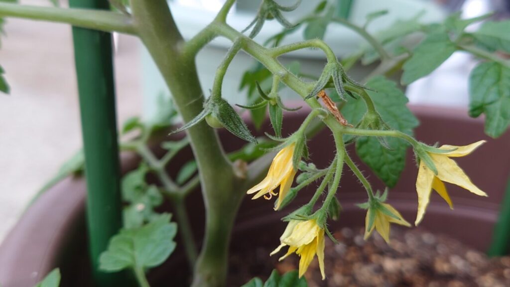 ちなみに、花が咲いたら軽く指でトントンして受粉を促す作業もしてます。風や蜂でも受粉できるようですが、少しでも実りが良くなるよう気づいた時だけですけど。(=゚ω゚)ノ愛の16連射!