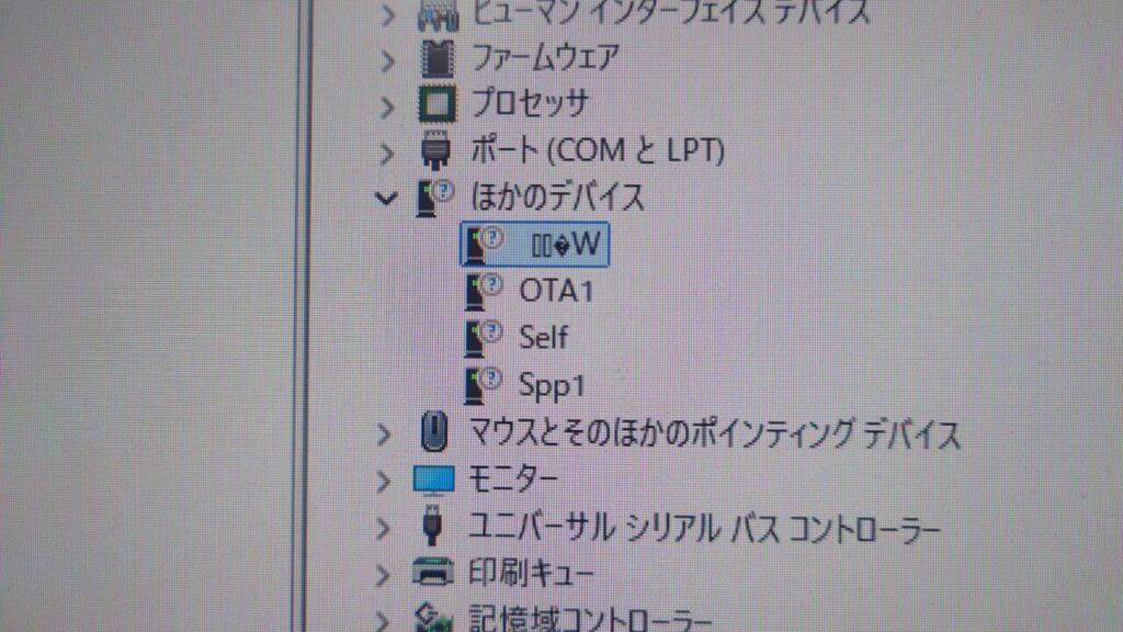 ほかのデバイスの欄に不明なデバイスがあるらしいですが見当たらない。てか、文字化けしてるデバイスの方がめっちゃ気になるんだが!( ゚Д゚)ナニコレェ~