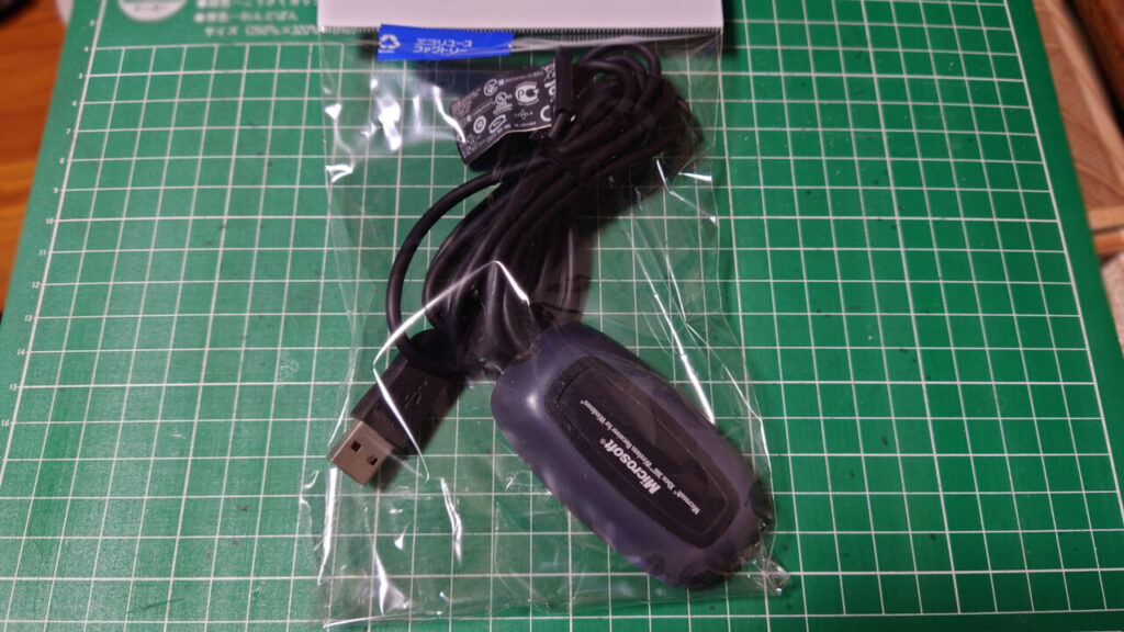 さっそく袋から出して確認。こちらのレシーバーはMicrosoftの印字があるので純正商品ですね。社外品のレシーバーは今でもネット通販で買えるみたい。(社外品の信頼性は不明)